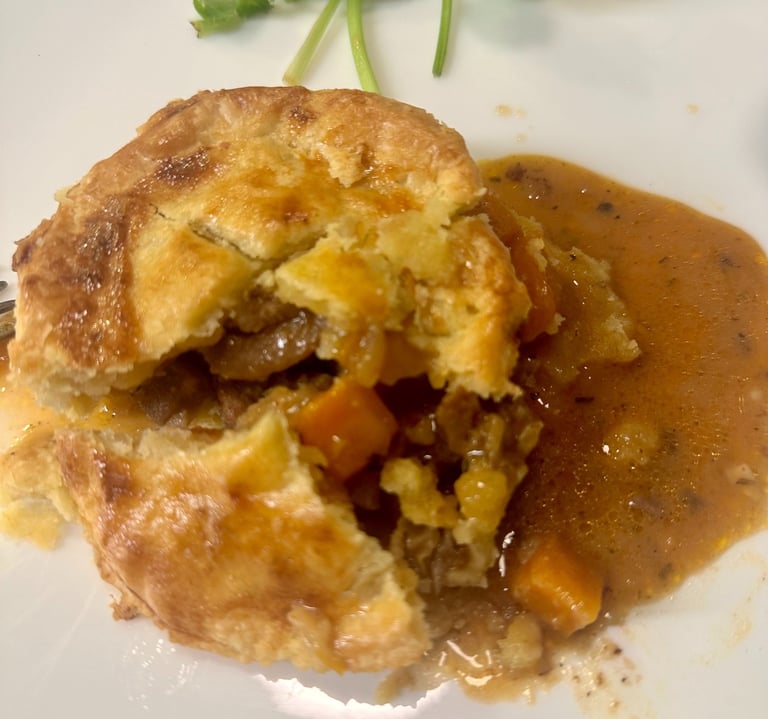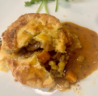 These Individual Lamb Pies are crafted for true savoury indulgence. Each golden parcel features an impossibly flaky, buttery crust that shatters delicately with every bite. Inside, a luxurious lamb filling awaits - slow-cooked until tender, rich with aromatics, and layered with deep, comforting flavours. Baked in perfectly portioned molds, these pies are hearty yet refined, making them an irresistible centerpiece for holiday tables, cozy dinners, or any moment that calls for warm, satisfying comfort wrapped in pastry.