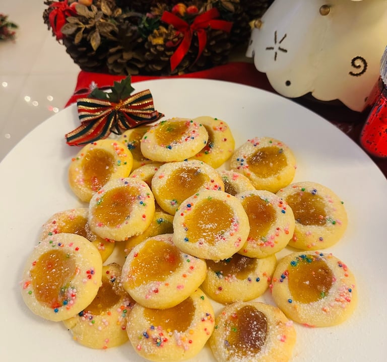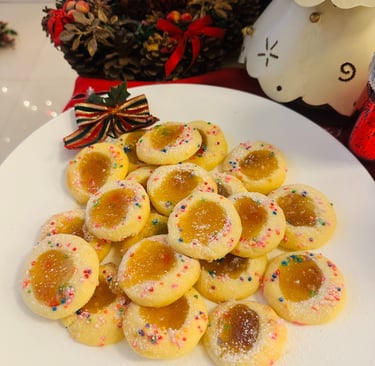 Introducing the first treat in my Christmas series: Italian Lemon Cheesecake Thumbprint Cookies. Soft, rich, and delicately tangy, these melt-in-your-mouth gems are crafted from butter, cream cheese, and sugar, then baked to golden tenderness. Each cookie is finished with a jewel-like drop of fig preserves, adding a whisper of sweetness and old-world charm. A simple, elegant indulgence - perfect for gifting, sharing, or sneaking straight from the cooling rack.