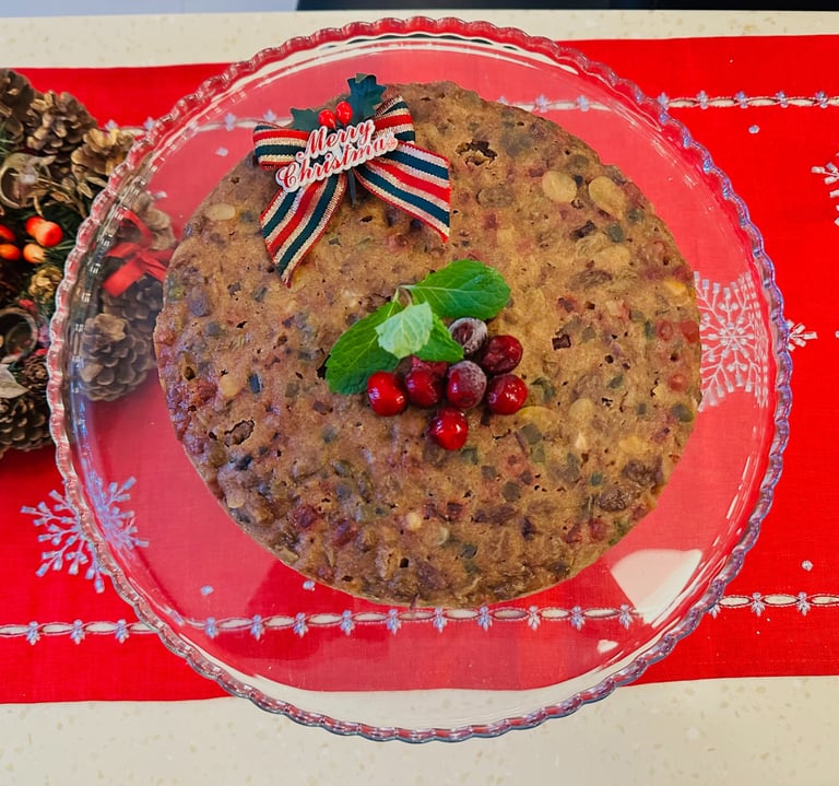 This Christmas, I’m reimagining a classic with a heart-healthy twist. My Brandy-Kissed Christmas Fruit Cake is packed with naturally sweet dried fruits, warm spices, and nutritious nuts- lightened with better-for-you ingredients but still rich in flavor. Slowly baked and brushed with a gentle splash of brandy, it’s fragrant, moist, and beautifully festive. A wholesome holiday indulgence that nourishes the heart and warms the season. My Christmas fruit cake is moist, fruity, nutty, and mildly naughty - just like the holidays should be.