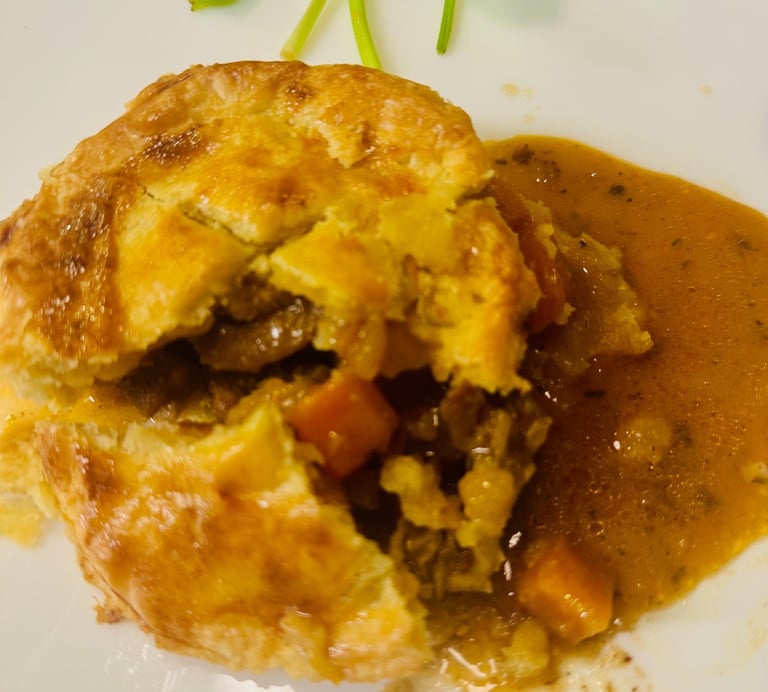 These individual lamb pies bring a touch of festive magic to the table. Wrapped in a golden, ultra-flaky pastry and filled with a rich, aromatic lamb filling, each little pie is a warm hug in holiday form. The spices, the buttery crust, the savoury depth - they all come together like a cozy Christmas evening. Perfect for gatherings, potlucks, or intimate holiday dinners, these pies deliver the spirit of the season one delicious, flaky bite at a time. You can also bake one large pie instead of small ones.